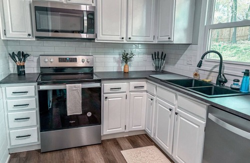 Nestled near Greensboro`s vibrant attractions, this charming single-level home offers a delightful escape with 40% off stays of 28 days or more. Enjoy evenings around the cozy propane firepit surrounded by twinkling string lights, while the spacious interior boasts a well-equipped kitchen, inviting coffee bar, and comfortable living spaces.