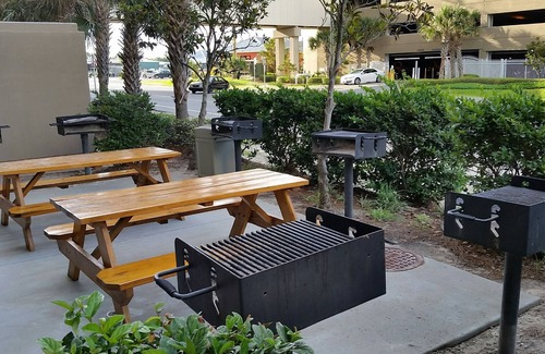 This family-friendly resort has two huge outdoor pools, a heated indoor pool, an arcade, a seasonal Tiki bar, a small convenience store, Waves restaurant and bar, an indoor movie theater, a charcoal grilling area, a huge well-equipped fitness center, and an attached 5-story parking garage.