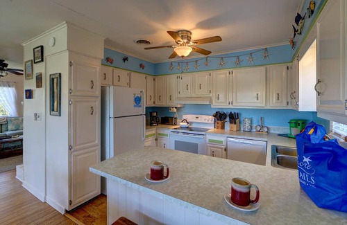 Extras: 2 flat screen cable TVs, WiFi, Keurig, grill, 4 kayaks, deck furniture, covered deck, fish cleaning table, linens and towels provided. No Smoking. Dog Friendly. Distance to beach access: over 1,000 feet. Beds: 1 King, 1 Queen, 1 Set of Twin Bunk Beds, 1 Pyramid Bunk Bed including 1 Twin and 1 Full. Key Type: Keyless Entry. Check-in Location: At the property.