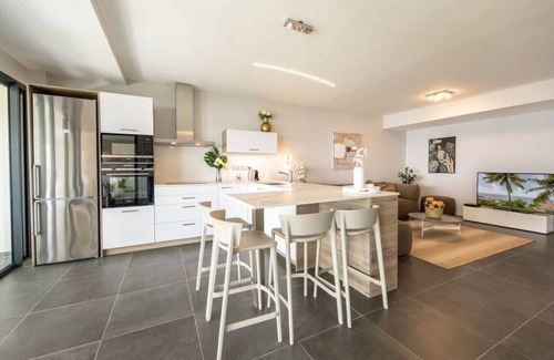 Cet appartement de 3 chambres est un grand logement neuf de 140 m2 décoré avec goût et disposant d'une grande terrasse de 30 m2 avec une très belle vue sur la mer des Caraïbes. Les trois chambres spacieuses ont chacune un très grand lit king size (180 cm). L'appartement dispose d'une très bonne connection wifi par fibre optique. Il est localisé dans le centre de la Martinique, idéalement situé aussi bien pour travailler que pour passer des vacances, proche des plages et des commerces.