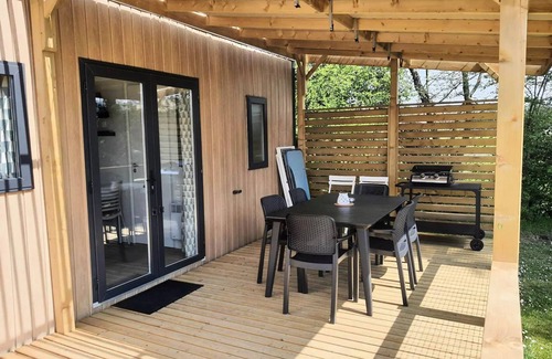 Flower Camping Le Château * - Homeflower Premium 35m2 3 bedrooms + TV + dishwasher + air conditioning + terrace XL semi-covered 6 people | House in HAUTERIVES