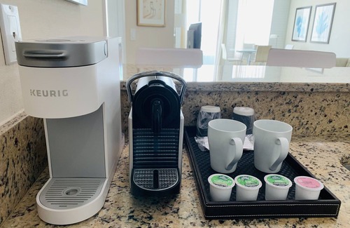 This modern 1000-square-foot 1-bedroom suite, boasting two full bathrooms and a fully equipped kitchen, offers both comfort and style. The spacious bedroom features a king-size bed, while the living area includes a queen sleeper sofa. Enjoy bay and partial ocean views from the balcony accessible from both the bedroom and living room. Recently revitalized with fresh paint, refurbished interiors, new stainless steel appliances, washer and dryer, LG smart TVs, and updated furniture, including a master bedroom set and queen sleeper sofa.