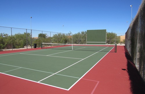 Private resort-style amenities on the grounds are exclusively for the use of our guests and include a tennis court, two pickleball courts, basketball, shuffleboard and a huge swimming pool (unheated) with views of the Catalina Mountains and city lights of the foothills and downtown Tucson. Sunset vistas over the Tucson Mountains are equally spectacular from here. Outdoor enthusiasts can enjoy nearby hiking, golfing, horseback riding, and a network of paved bike routes throughout the area that can be accessed right from the end of our driveway!