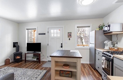Forestlane Cottages were designed and built solely by the owner with simplicity, efficiency and quality. The cottage and windows are situated to provide privacy but yet enjoy the outdoor space where it is located. Enjoy the private cedar wood porch in the morning sun or midday and evening shade from the surrounding trees. The cottage living room has a gas fireplace and reclinable couch chairs to enjoy a tv show or relax from a long day of adventure in Alaska. The kitchen is provided with all the utensils and cookware to provide guest everything they need to make a great home cooked meal.