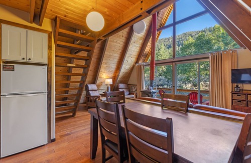 Experience an A-Frame-style cabin nestled at the foot of Carson Peak and offering breathtaking vistas of the Ansel Adams Wilderness.