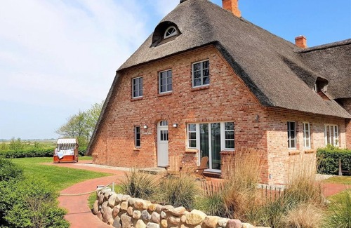 Exclusive terraced house under thatch in a quiet, yet convenient location with stunning, unique panoramic views over marsh and natural pasture. EC fl. with sitting area (sofa bed), flat screen TV, / Blue-RAY DVD, workstation, mini hi-fi system / USB. Fully equipped kitchen: induction cooker, microwave, fridge / freezer, washer / dryer. Functional shower room / WC with walk-in shower at ground level. Store room. First floor: 1 bed. with double bed, space for cot. 1 bed. with 2 single beds. Both bedrooms. with flat screen TV and blackout curtains. Spacious shower room / WC with walk-in shower, towel warmer. Comfort details: Underfloor heating, insect screens in all rooms. Storage for bicycles available. Own car parking space with direct access z. House property. 2 sunny terraces with a view. Big beach chair. Ironing board, iron, safe, high chair, games, hair dryer. The barbecue is not allowed. The 5. Person and the pet will be charged with 5,00 Euro per day.
