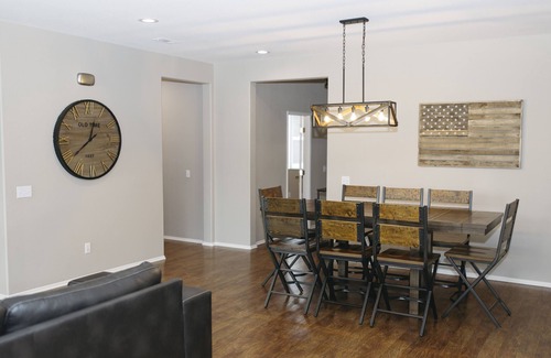Fully furnished 4-bedroom, 2.5-bathroom. This home includes a fully equipped kitchen, a dedicated workspace, and white linen on all beds. This beautiful home is located in a quiet neighborhood within walking distance of a community park. Guests will have access to the garage, driveway, and street parking. Shopping and restaurants within 3 miles away for convenience.