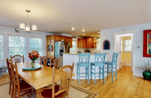 Gather & Savor - The fully stocked kitchen makes it easy to prepare family meals, and the outdoor grill is perfect for summer cookouts. Fresh linens and towels are included in the cleaning fee, and beach chairs are provided so you're ready for a day by the ocean. The nearest beach access is just a 2-minute cart ride or a scenic 0.4-mile stroll away—ideal for catching breathtaking sunsets.