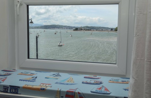 Gadlys House - Beau View is a quaint apartment on the second floor of Gadlys House, which is accessed through a shared courtyard entrance and staircase (with Gadlys House - Water's Edge), leading up to the first floor where there are entrances to both apartments. Through the door is another flight of stairs that leads up to Beau View. Although straight, the two staircases to the second floor may not be suitable for everyone, the less able or young children for whom stairs can be hazardous, but for the more able 'boy oh boy' is it worth it! From here you get the most magnificent views of the Menai Straight with the fantastic back drop of the majestic Snowdonia mountain range and views of the boatyard at Gallows Point and further down towards Bangor where you can see the Pier and Penrhyn Castle. Being situated on the sea-front it is perfect for watching the sealife and as the yachts which are moored opposite the apartment, a great vantage point for watching them get ready and setting sail for the Regattas that take place during the season on a Wednesday evening and Saturday afternoon. The property has a homely feel but with many unusual features which make it unique, such as church chairs and a pew in the kitchen area. The lounge boasts large windows featuring beautiful sea views. It's a great location for families, being just a short walk from a large variety of interesting and unusual shops to browse and numerous great places to eat, drink or takeaway. Not forgetting the children's playground near the Castle and crabbing from the Pier. The flat features three bedrooms including one zip/lock king, two zip/lock singles, and a full-size set of bunk beds for the kids. The kitchen is well equipped for you to either enjoy your own home cooked meals or treat yourself to a delicious meal from one of the takeaway restaurants in Beaumaris. The sitting room has a large corner sofa and other various seating arrangements so the whole family can sit around and play games together as you watch the sun go down through one of the large sea-facing windows. The outside of the flat is on the seafront, so you'll be sure to be the first person to know when the tide is in and when it is best to go crabbing. As you can see from the sitting room windows Snowdonia is not far, so be sure to bring your hiking boots! Which you can also use on the many country and coastal walks near Beaumaris.