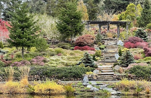 Spend a day exploring the farm and gardens. Use the treasure map to find chickens, honey bees, fruit trees and vegetable gardens. Hike the hidden trails through the forest. Marvel at the playful collections in the recycled art garden. Sandy, the creator of Frog Song, can give you a farm and horticultural tour. If you are a gardener, delight in the variety of plantings and seasonal blooms. If you are interested in a 100% sustainable farm, check out the well, solar panels, and working compost piles. Children will enjoy a play area with recycled art, pedal boat paddling on a half-acre pond and bocce ball.