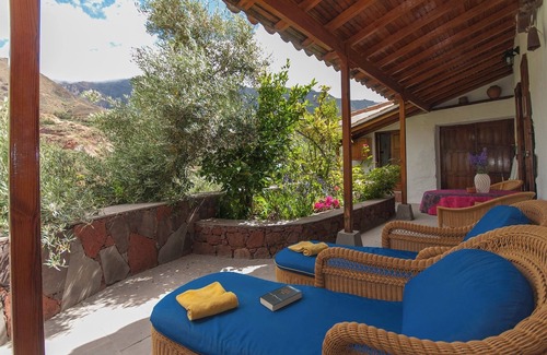 Escape to the heart of the Barranco de Tirajana and discover a holiday home in Gran Canaria with private pool for families that preserves the essence of traditional Canarian architecture. Access is via a picturesque 50-meter path lined with olive trees, almond trees, and palm trees, hinting at the close connection with nature that awaits you.