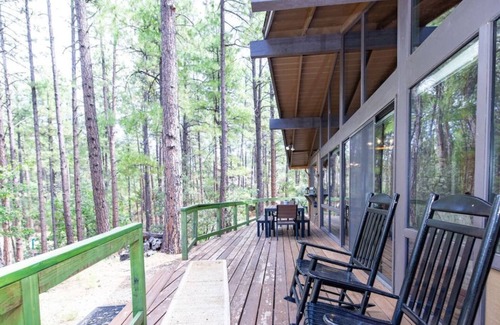 Loba Lookout is a three bedroom, two bathroom home located in the Prescott National Forest. It is 5 miles from Downtown Prescott and 1 mile to Goldwater Lake, making it the perfect place to gather with friends and family. The inviting living space features wall to wall windows which overlook granite boulders, ponderosa pines and native wildlife. Loba Lookout is a retreat for families, mountain bikers and hikers.