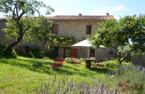 Bastide from the 18th century with three cottages, in an exceptional setting with views of the hills of Barjaude and Beau Soleil, 4ha of Oaks, lavender, surrounded by terraces, haven of peace. Shaded parking, electric grill, games balls, sandbox, garden furniture. Hiking trails on the spot. Bathing at the Lake of Holy Cross 25 km. Blue, ground floor: kitchen, living room with sofa and wood stove (30 euros the stere wood), two spacious bedrooms including one with two single beds in 90 cm and the other a double bed (140 cm). WC in the bathroom. Underfloor gas central heating.