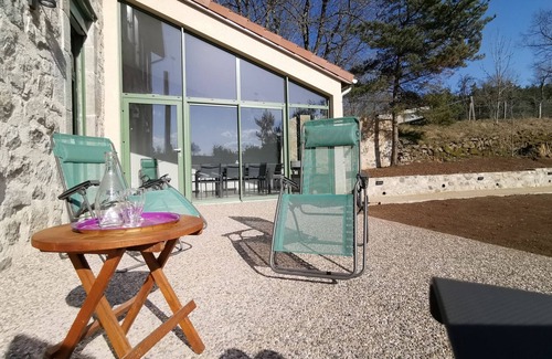 Nearby: The young gorges of the Loire, many hiking trails, the Mezenc plateaus.... The entrance to the cottage is on the same level as the living room, on the same level you will have a pleasant veranda, a bedroom equipped with a double bed, a bathroom and a toilet.