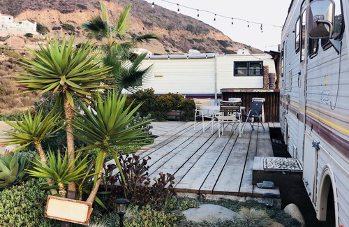 What do you get with a stunning 180 view of Ensenada Bay and a RV and Trailer?.....Glamping! Beautiful wood decking, garden, outdoor kitchen, grill, and fire pit connects it all together for a rare opportunity to camp in style. Sleeps 6 with two fresh sheeted queen beds, two couches, or just sleep under the stars. Showers (1 outdoor), 2 bathrooms, hot water, electricity. Outdoor kitchen has a large refrigerator and sink area.