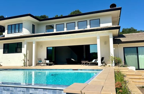 Escape to our stunning hilltop retreat in middle of Sonoma Valley, where modern organic luxury meets breathtaking natural beauty. Located on a private 20-acre gated property, enjoy perfect blend of tranquility and sophistication. Experience seamless indoor-outdoor living with expansive decks. Relax in our vanishing edge pool and spa, where you can soak in panoramic views of the valley below.