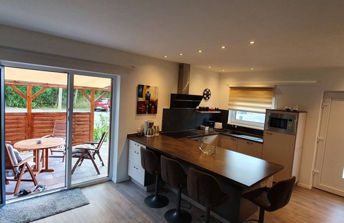 At the southern tip of the island of Rügen, a newly renovated and newly designed (May 2019) apartment awaits you. The apartment occupies the entire lower floor of a house. Should you ever have to wash your clothes on vacation, there is an utility room with a washing machine and dryer in the same building.