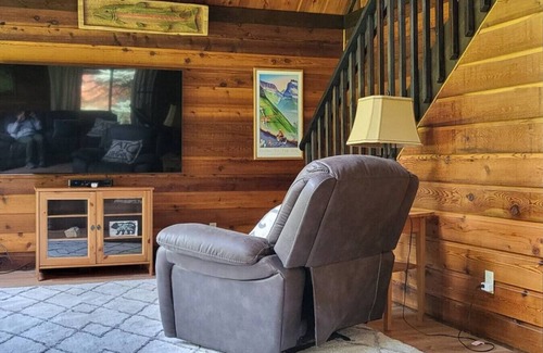 Full use cabin with large yard will provide lots of area to play corn hole, sit by the campfire, or read your favorite book. Enjoy a beautiful walk to the river just across the street and watch wildlife up close and personal from bears to deer and sometimes even an eagle!