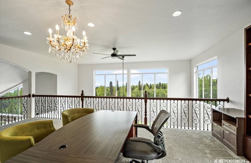 Welcome to your ultimate getaway in Anchorage! This massive home offers stunning views of Sleeping Lady, mountain ranges, the ocean, and breathtaking sunsets. Nestled on over two acres, it’s conveniently located near highways, hiking trails, fishing spots, and top attractions.