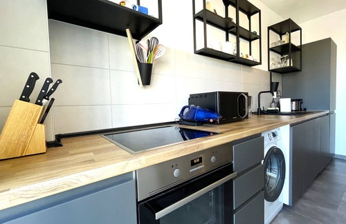 The apartment features a city skyline view from it’s terrace, as well as a fully equipped kitchen. You will feel at home, with a wide screen Smart TV that offers access to streaming platforms, modern appliances and complimentary toiletries. Book now and enjoy a perfect stay in Brasov!