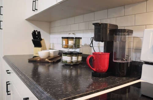 Fully equipped kitchen perfect for home-cooked meals before heading to Uptown