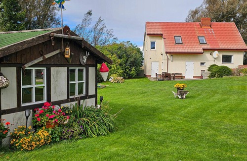 Start your day with a walk through the gently rolling countryside or explore the surrounding area by bike. The nearby Jamno Lake invites you to paddle, fish or simply relax on the shore. The coast near Mielno can be reached in just a few minutes by car. There you will find wide sandy beaches, small cafés and promenades that invite you to take a stroll. Active holidaymakers can enjoy numerous water sports, horse riding and hiking trails.