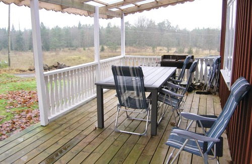 Charming house in the characteristic style of the country and placed on a beautiful spot. You are in the heart of Småland. Many utensils in a modern kitchen, well-maintained bathrooms and the massage shower let you fully relax here. The terrace is large and partially covered. When you stay here, you will enjoy a relaxing view of pastures and vegetation. In the nearby lake Skärsjön you can catch pike, zander and perch. The house owner sells the fishing license. A boat can be rented for the neighboring lake on request. Shared canoe available at the lake. S04236: 30 m.