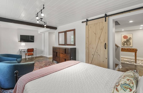 Don't Miss Out - Gorgeous home with amazing and relaxing outdoor spaces! Enjoy morning coffee outside while soaking in the sounds of nature. All of this while being less than 1.5 miles from The Marietta Square. This recently updated 4 Bedroom home is situated in a quiet family neighborhood setting within walking distance to the Marietta Square’s dining and shopping. Located in one of Marietta’s historic districts, this home is perfectly located for events at Truist Park as well as Mercedes Benz Stadium, State Farm Arena and all of Downtown Atlanta's attractions. During the day, you can attend a conference in Atlanta or explore hiking and mountain biking nearby the home. At night, you can relax and decompress in Marietta’s prime location for dining and entertainment! Light up the fire pit out back and break out the S'Mores! With 2 Smart TVs, you can log on to all of your streaming services and binge watch your favorite shows.
