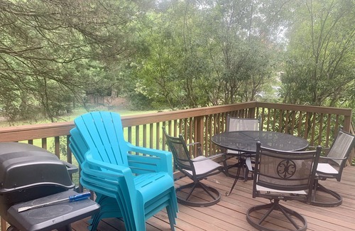 Gorgeous 3ba 2ba home. Newly added to VRBO but 20+ 5 star reviews on other sites. Vaulted ceilings and fireplace in family room. Master on main with full bath. Large chefs kitchen with access to patio. Full size washer / dryer and tons of storage. Large patio with views of large peaceful back yard. Upstairs, 2 large bedrooms and another full bath. Wonderful home close to Southpark, Ballantyne, Matthews and Uptown. 3 memory foam queen beds. We have 3 other homes and hundreds of 5 star reviews!