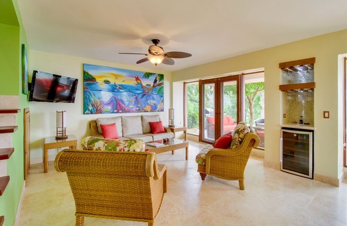 This villa-style condo for seven is located on the Bahia Pez Vela Resort just three miles from Playas del Coco, and 10 minutes walking from the serene black sands of a private beach. With a hillside setting overlooking lush vegetation and the distant ocean below, however, you'll feel surrounded by a unique jungle energy that few other Costa Rican resorts possess. You can take it all in from the instantly-accessible shared infinity swimming pools or your private shaded cliffside patio surrounded by palm trees and ferns.
