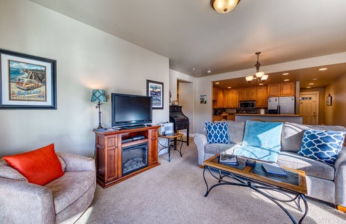 From the bedroom, you'll have deck access, another flat screen TV, and a second electric fireplace. Before turning in, head outside to gaze up at the stars, and when you come back inside, the room will be all cozy and warm before getting into the snuggly, memory foam queen size bed. Along with the sleeper sofa in the living room, this condo will comfortably accommodate up to four guests. And the last bit of luxury? An extra large soaking tub in the full bathroom. Just the thing after a long day exploring all of historic Old Town's shops and galleries.