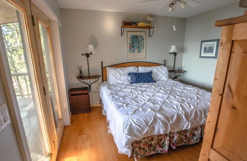 Indoors, you’ll find an abundance of comfortable spaces filled with rustic charm and décor. The great room features soaring vaulted ceilings and abundant natural light. The living room offers sofa seating, a smart TV, and a gas fireplace. Just imagine cozy movie nights settled in watching your favorite movie, with stunning outdoor views offering the perfect backdrop. An elegant dining room table can seat 6 for formal meals, or rustle up some competition and grab one of the provided board games for an exciting evening the whole family can engage in. The kitchen comes well equipped with all standard appliances, drip coffee maker, cookware, and dinnerware – everything you need for homestyle meals, quick and easy breakfasts, or a spread of afternoon appetizers.