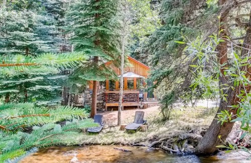 While it's minutes from historic old town Idaho Springs, Colorado, the cabin is situated in a small riverfront enclave near other tiny cabins and has a backwoods feel!