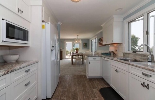 4 Bedroom, 2 bath home centrally located on a large, corner lot between Surf Drive Beach, the Shining Sea Bikeway & Falmouth Village. Slip into vacation mode, this rental has everything you need to relax on Cape Cod! The interior has been designed with an open, airy living space on the second floor that is perfect for entertaining friends and family or just kicking back on a lazy summer day. The kitchen and bathroom have been newly remodeled. An expansive, outdoor deck dramatically enhances the beach vibe and provides vistas that are the envy of the neighborhood. Enjoy panoramic views of the Vineyard Sound; you'll be situation close to beaches, boating, shopping, restaurants, ferries to Martha's Vineyard and Nantucket, and more. Come and see all the Cape has to offer!