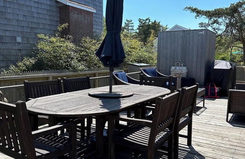 This air conditioned beach house has four bedrooms, living room, dining area, kitchen (including dishwasher) and 2 bathrooms. You also have access to a washer and dryer. We supply all pillows, sheets and towels. There is a great deck with outdoor dining and lounge area and grill on the south side of the house right off the kitchen to enjoy summer BBQ's. Also we have an outdoor shower to rinse the salty water and sand from your day at the beach.