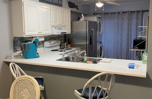 Welcome to our family's beach house! Relax in our spacious, clean, and updated 2 bedroom/2.5 bath condo. We're located in a gated, beach front complex where you are steps from the beach, pool, and hot tub! There are no streets to cross! Enjoy a quiet family friendly courtyard with available chairs at the pool and common areas. 2 Seasonal beach lounge chairs and umbrella included!