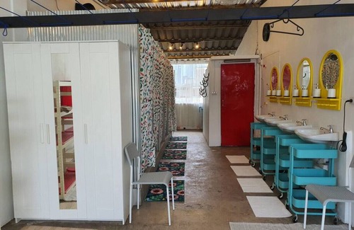 Bathrooms don't have to be boring. We've created multiple unique bathrooms we think you will love! Bight fun cheerful yet super functioning and practical. The showers are hot and offer choices of rainfall or hand held wand. You will find one bathroom on the ground floor. Don't miss it! It's a one of a kind you will never see anywhere else! Then on the second floor there are 3 toilets, 1 shower, and 1 sink. Then on the Fourth floor you will find a massive bathroom that has FIVE SHOWERS, 2 toilets, and FIVE SINKS. No one has to wait!