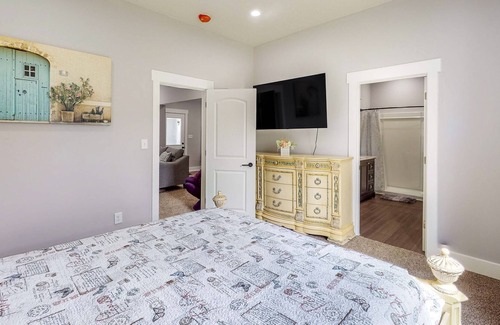 Additional interior perks include a 65' TV, a gas fireplace, and a Tempur-pedic split adjustable mattress in the primary bedroom.