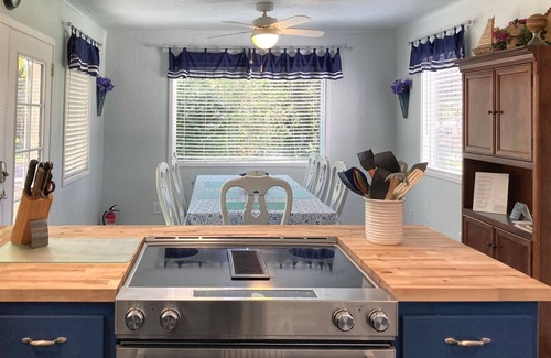 This rental is located immediately south of Fort Bragg and is right in the middle and so close to some of our best beaches, parks, trails, great food, shopping and more.