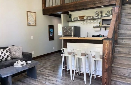 Grinnell is an beautiful modern/rustic style cabin with plenty of natural light. There is a master bedroom on the first floor with a queen bed. The living room, kitchen and restroom are also located on the first floor. The stair case leads to the loft that overlooks the living area. In the loft are two queen beds.