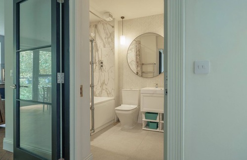 The bedroom contains a comfortable UK king-size bed, with hotel-quality linens to ensure a good night's sleep and multiple storage spaces.