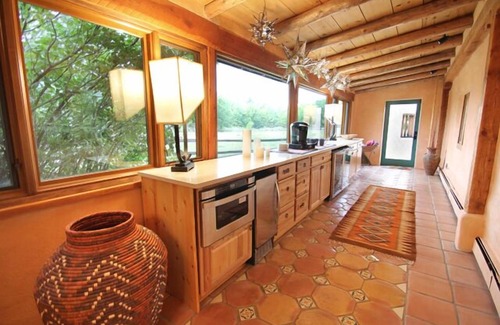 Hacienda Encantada: A Magazine ready classic adobe and very upscale Taos vacation rental home with exceptionally beautiful faux painted walls and cabinetry throughout. Majority of furniture was custom built especially for Hacienda Encantada. Absolutely thrilling gourmet kitchen with/commercial appliances.