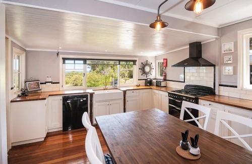 Those fortunate to occupy the master bedroom will enjoy French doors directly to the cottage deck and wonderful views across the National Park and to the Indian ocean from the king-sized bed. A fully equipped and delightful character kitchen and dining room is complemented by a wood-fired heater for cozy winter days and nights spending quality time with your family and friends.