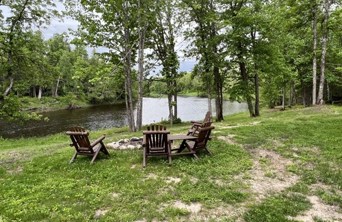 Gorgeous view of the Bigfork River, surrounded by mature oak trees. Peaceful & beautiful setting! Wood Sauna, Hot Tub, charcoal grill and fire pit ready to go! Deck and patio perfect for entertaining or just relaxing. The Bigfork River is known for great fishing, and beautiful canoe/kayak trips.