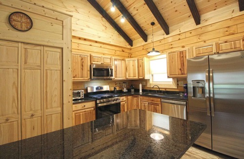 Happy Daze is a beautifully decorated one bedroom, one bath veranda level log cabin in the Bryson Village Community. This lovely cabin features a nice covered deck with hot tub and views of the community pond.
