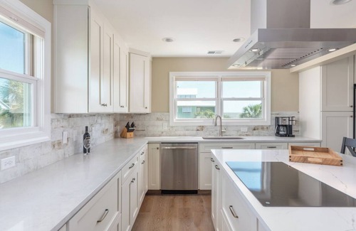 Head outside through the glass doors to the sun-soaked deck off of the living area. Swing a beach towel over your shoulder, slip on your flip flops, and make your way to the convenient beach access point across the street. From here, you'll have access to three miles of pristine sandy coastline to explore. Relax on the beach and soak up the sun, play in the gentle surf as dolphins swim past, watch the pelicans dive for their dinner, build sandcastles, and search for seashells. A peaceful canal in your backyard provides additional water views from nearly every window in the home. And after a long day at the beach, rinse off sandy toes and salty skin in the outdoor shower before heading inside. At Harbor Haven, you'll have everything you need for a memorable holiday by the sea.