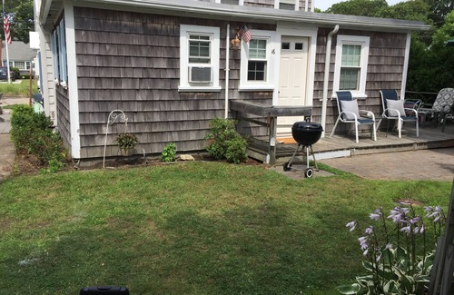 1/2 to beach with pool. This 2 room cottage is in a great location on property. It is located at Pilgrim Acres Village in South Yarmouth MA. It's less than 1/2 to beaches and has a great pool. My beds are somewhat new. There is one full and one twin. The coach is a new American Leather queen pull out.
