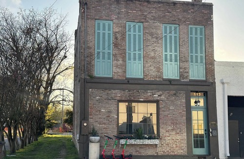 This is the upper floor of a two story historic building with a private BALCONY. The unit has its own separate entrance and is well appointed with high end décor and art. There is a separate downstairs unit (not shared, but can be booked and combined upon request if available).