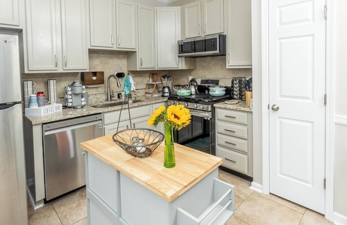 This townhome-style condo has an amazing, relaxing and beach inspired atmosphere in a nature wildlife area. You get the best of both worlds at this renovated property, equipped with modern appliances and technology. Billiards Area to meet everyone needs & wants. Entertain everyone with air hockey, pool, ping pong, foosball & so much more. Comfortable and inviting beds with bamboo sheets. office ready in every bedroom for work-on-the-go. Washer and Dryer inside the property. First Aid Kits, Irons/Boards and smart tv's in every room. Plenty of dining and cozy seating areas throughout and a complimentary coffee bar. A studio on the 3rd level equipped with a kitchenette, private bath & private living space. Just 5 minutes from a gym, restaurants, markets, shopping, pet salons, coffee shops and even the hospital. The trails and surrounding neighborhood are pure historic and inviting of nature to the trails & wildlife. Seasonal community pool available to enjoy as well as the nature views from your window. Come and visit our home and let the beach come to you!