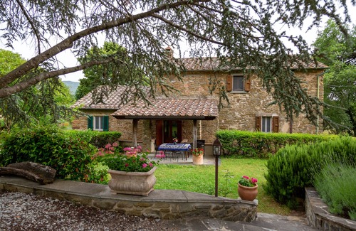 Enjoy a Tuscan experience on our organic property, enchanting and cosy, it is nestled in the olive groves on a south-facing hillside, on the edge of the Apennines. On a sunny day, stroll outside in the garden to sip your morning cappuccino and enjoy an amazing view of the lush Tuscan landscape. Sweet fragrant lavender, rosemary and thyme fill the air, find a comfy corner to sit and absorb the beauty around you and the serenade of birdsong day and night . In the summer months soak up the sun or enjoy the large pool. The facade of this three-story ancient watermill is built from the local sandstone, ‘Pietra Serena’ with it's soft ochres and greys. Lovingly kept, the villa retains its rustic charm.